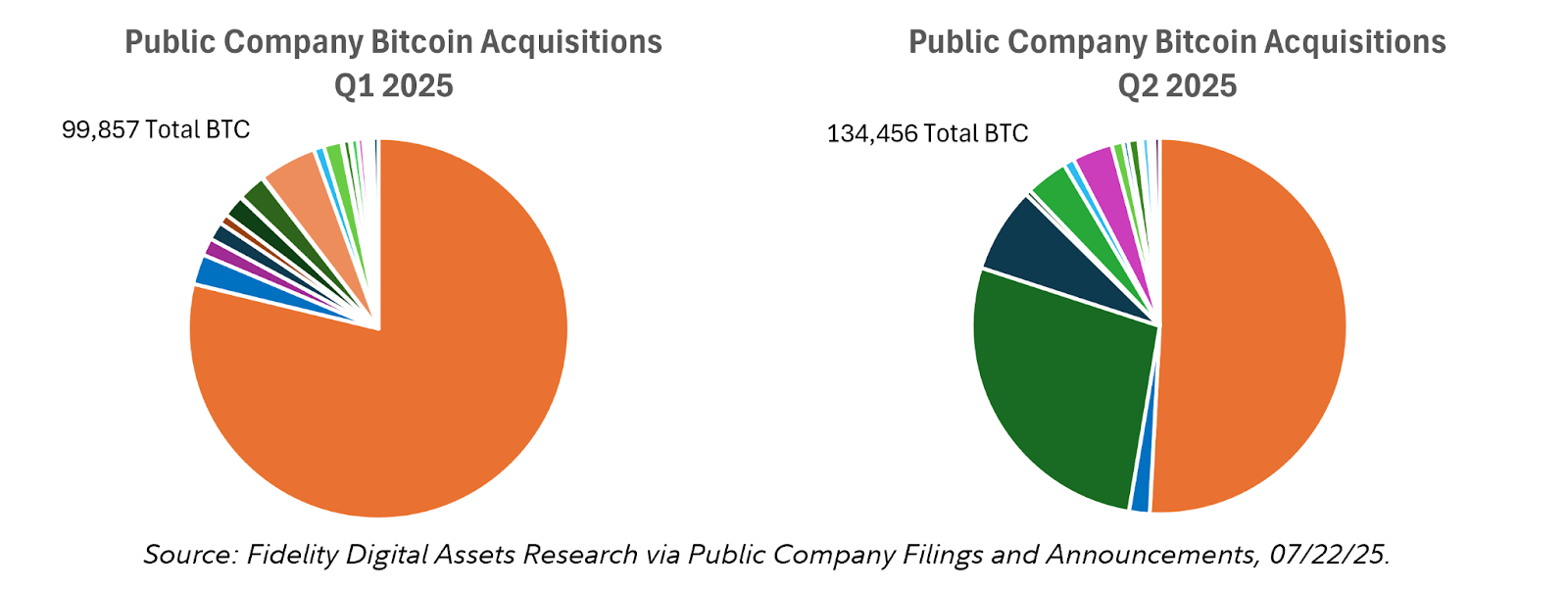 The growing institutional accumulation saw total Bitcoin purchases increase 35% quarter-on-quarter, from 99,857 BTC in the first quarter of 2025 to 134,456 BTC in the second quarter.