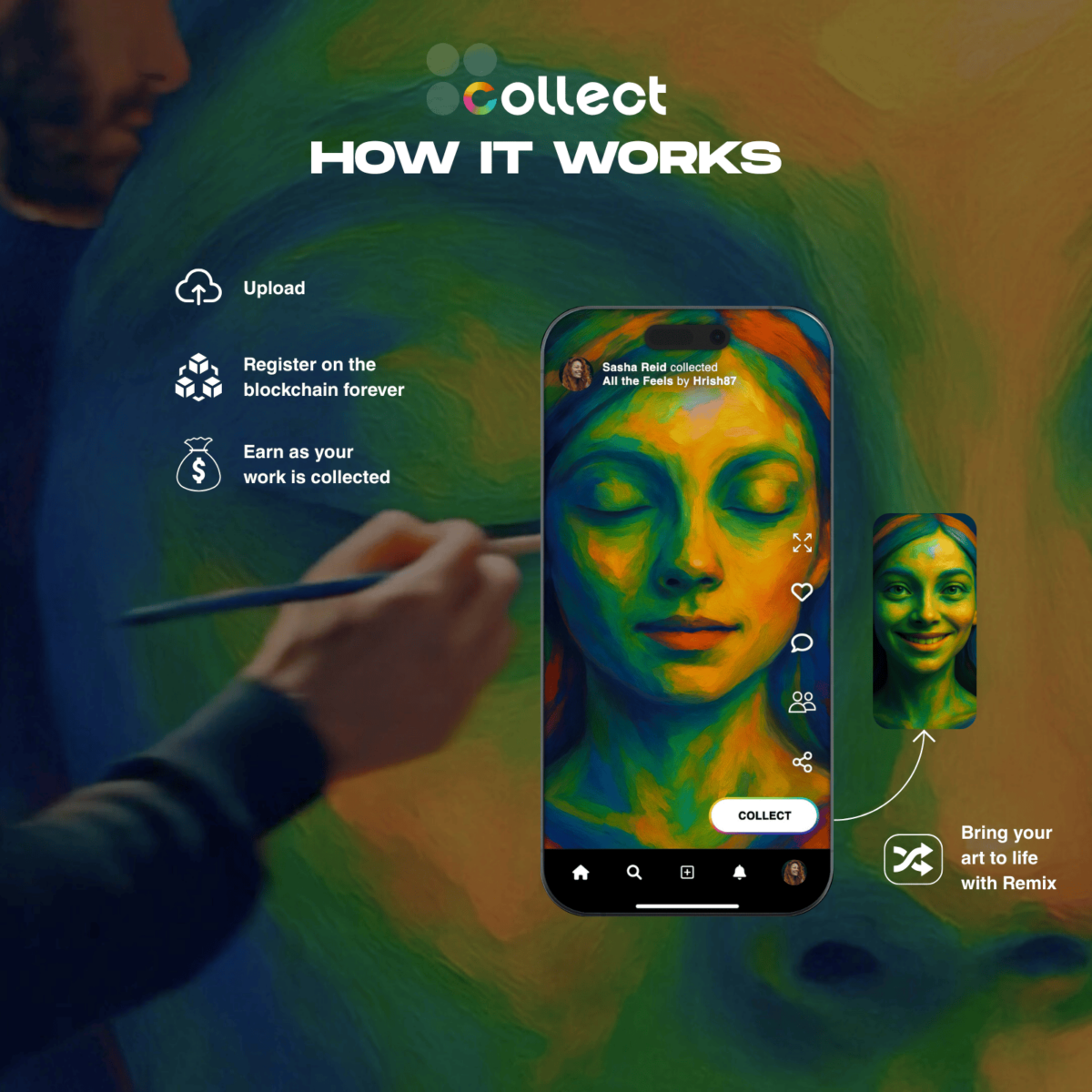 - Collect is designed to put your work in front of the broadest possible audience — from seasoned Web3 collectors to everyday fans discovering NFTs for the first time.