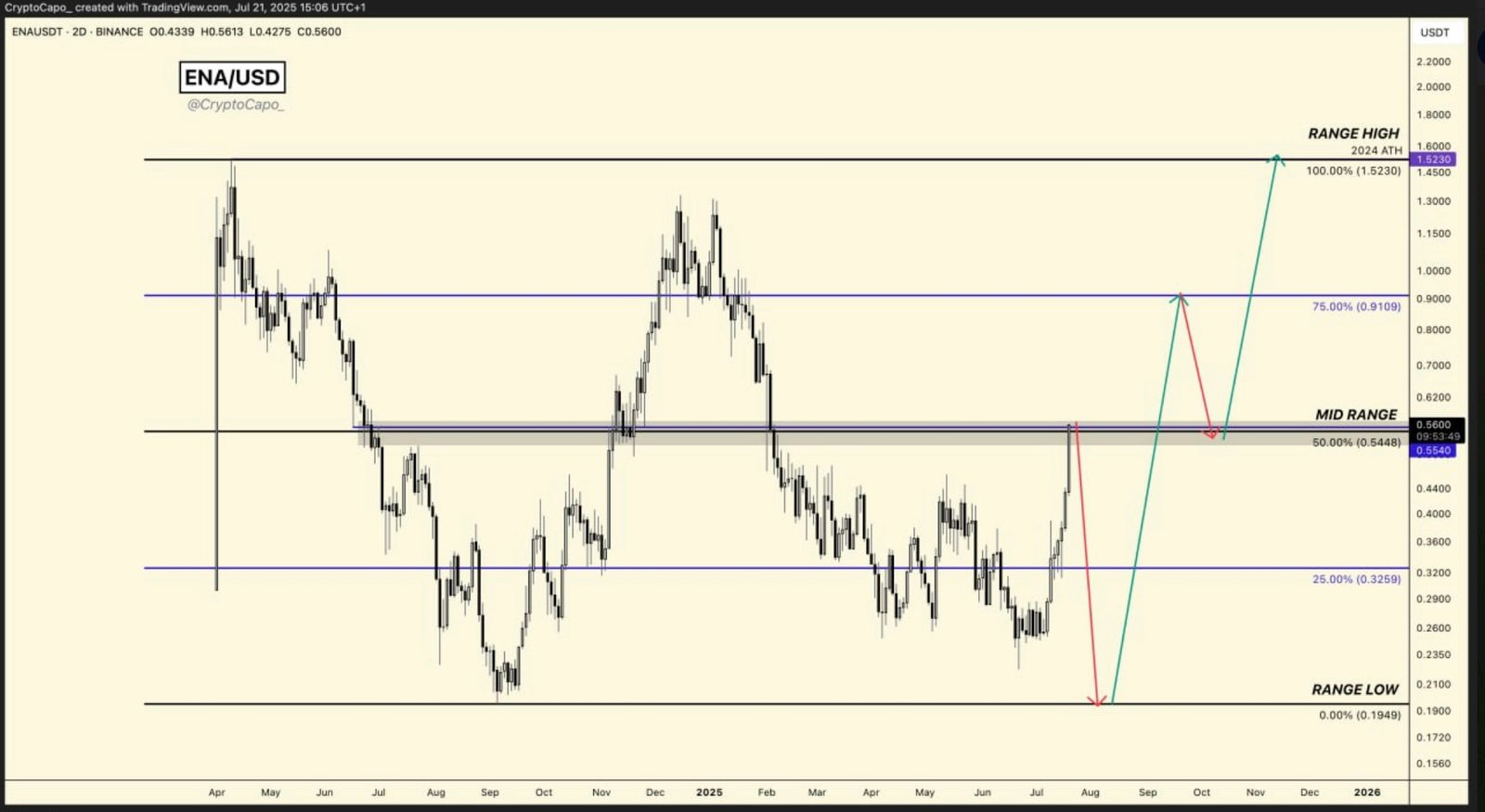 However, the analyst says ENA may have a sudden correction before continuing higher.