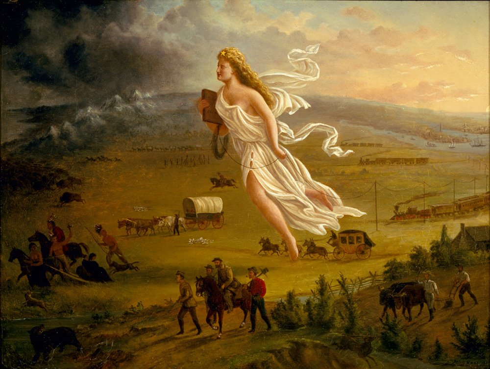 PROGRESS REPORT. Since Donald Trump took office for his second term, the Department of Homeland Security has used its social media to post artworks that ostensibly speak to American greatness, rankling some, including the Thomas Kinkade Foundation, which said it was considering legal action over the unauthorized usage of the artist’s work. But what did DHS really mean when it posted an image of American Progress, an 1872 painting by John Gast, a German immigrant who allegorized Manifest Destiny by showing Native Americans being forced out of his picture? The New York Times explored the matter and approached Stephen Aron, the director of the Autry Museum of the American West in Los Angeles, which owns the work. “I don’t know of any current American history textbook that would present American Progress as an accurate account of westward expansion,” Aron said, describing the work as “one of the ways 19th-century white Americans wished to imagine it.”