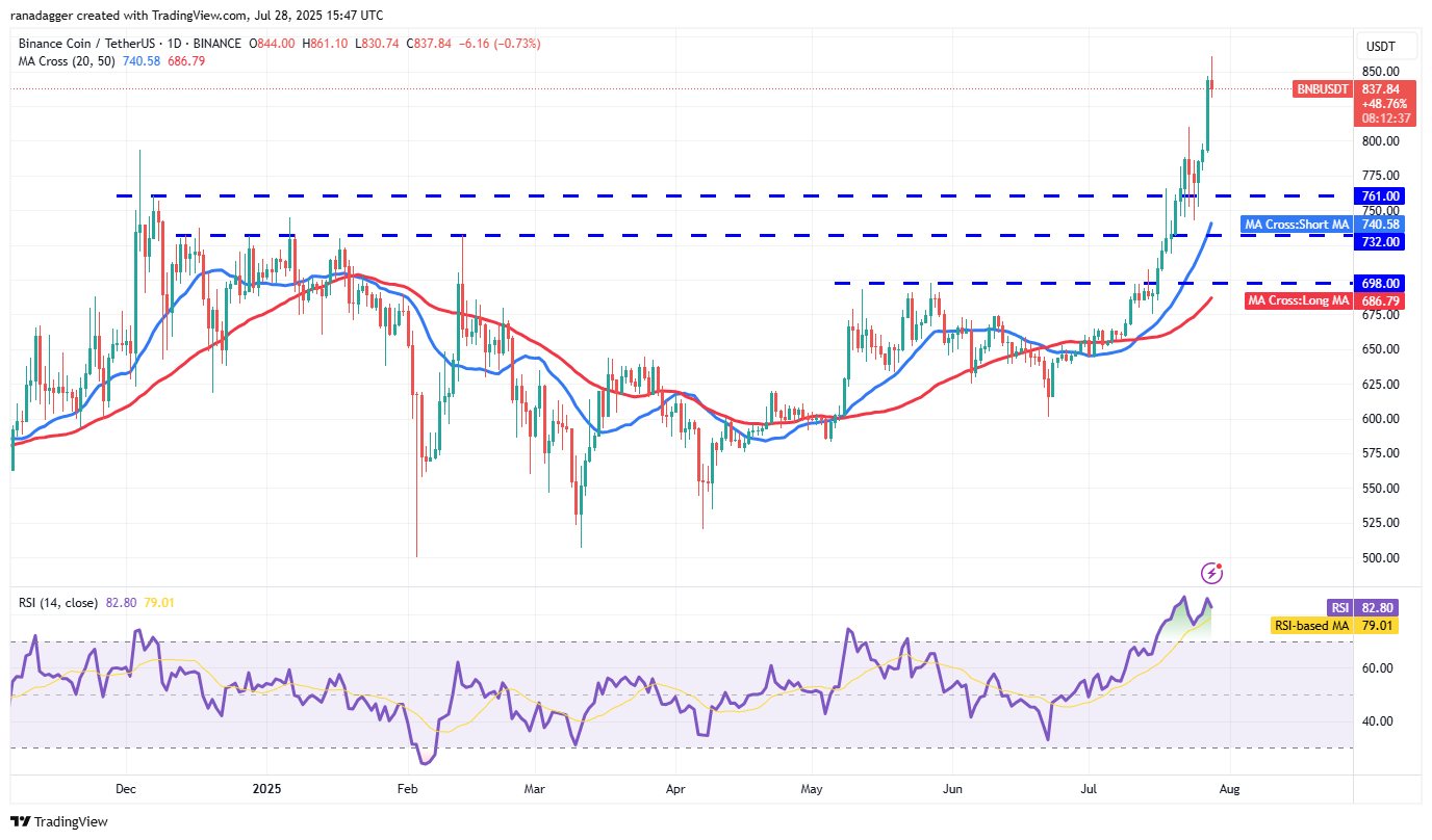 BNB (BNB) turned down from $809 on Wednesday, but the bears could not sustain the price below $761. That suggests the bulls have flipped the level into support.