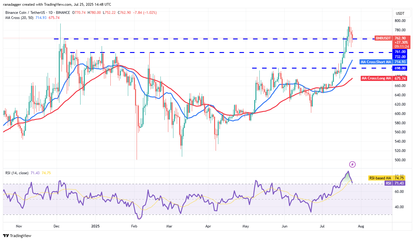 BNB (BNB) skyrocketed to a new all-time high of $809 on Wednesday, but the bulls could not sustain the higher levels.