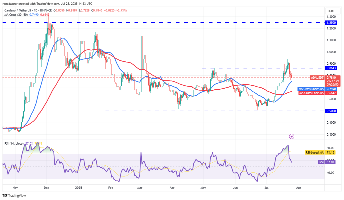 Cardano (ADA) is finding support at the 20-day SMA ($0.74), but the bears are likely to sell on rallies.