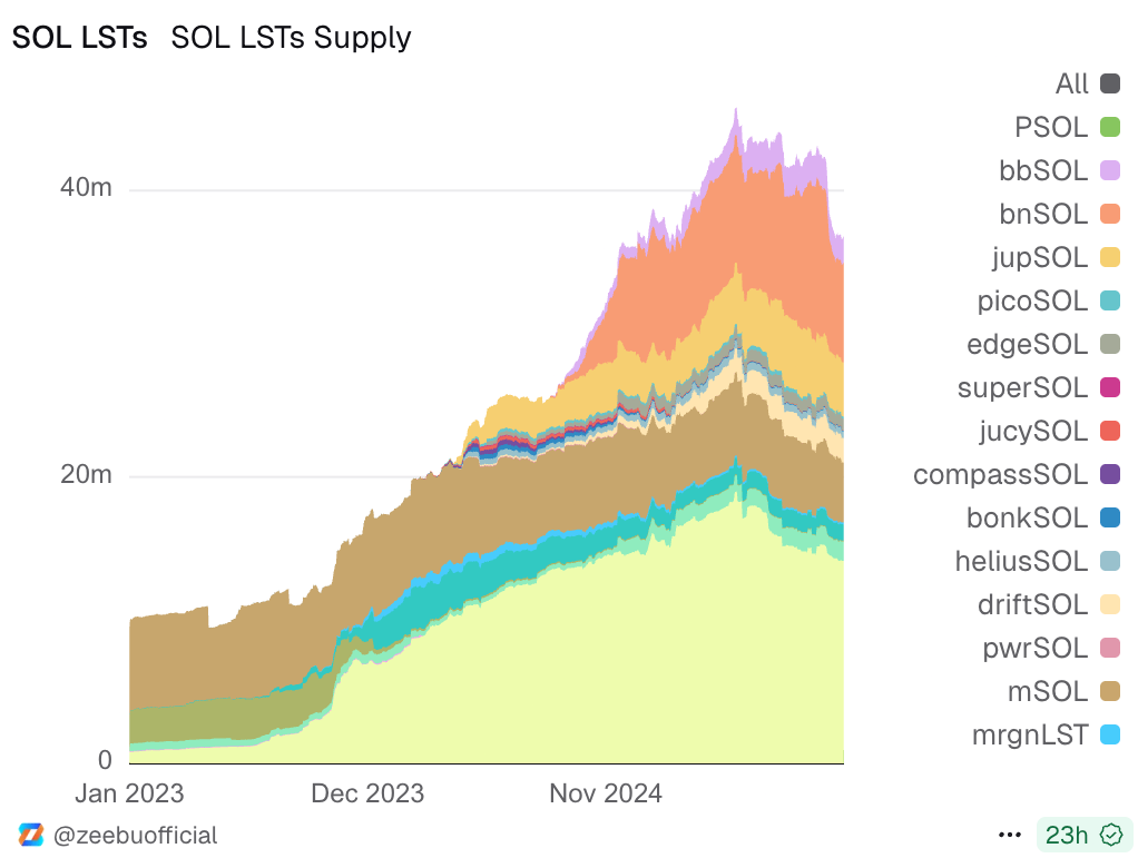 Much like Ether, Solana LSTs doubled in supply, from 20 million in January 2024 to about 40 million at the time of writing, with a total of 67% of the Solana token supply now locked in staking smart contracts.