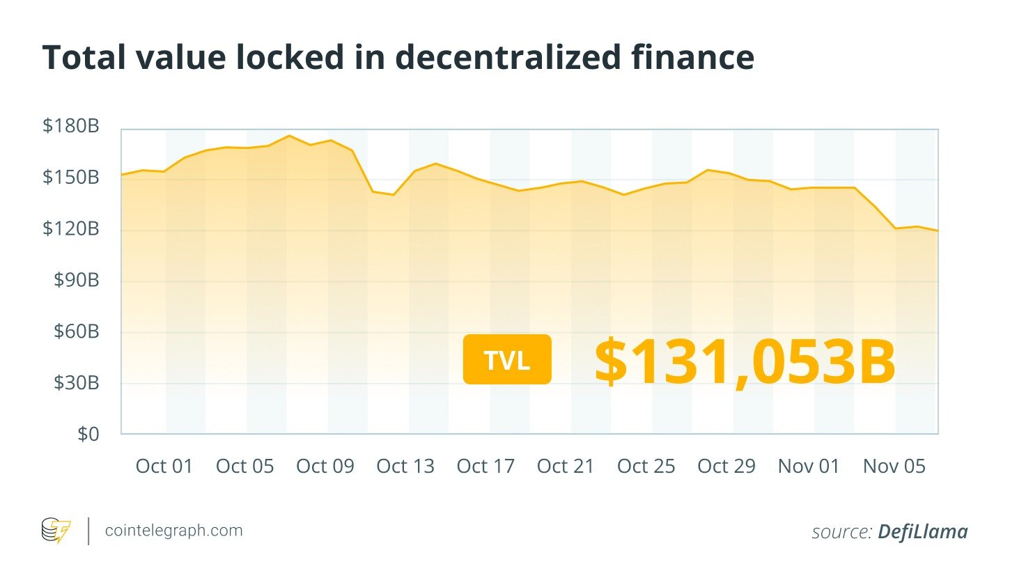 The data showed that DeFi TVL fell 6.3% to $221 billion and another 12% in early November to $193 million. DappRadar attributed this to the $20 billion liquidation event in October and the subsequent collapse of Stream Finance.