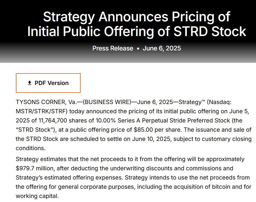 Strategy, the world’s largest corporate Bitcoin holder, has also been leveraging debt financing strategies to buy more Bitcoin. On June 6, Strategy announced an upsized stock offering of nearly $1 billion, quadrupling the previous $250 million, Cointelegraph reported.