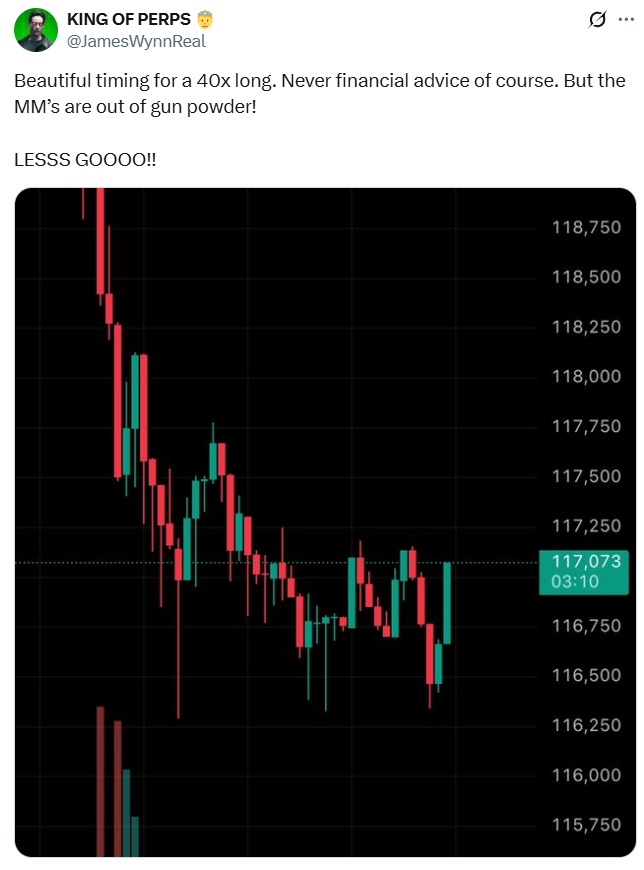 Multimillionaire cryptocurrency trader James Wynn returned despite numerous previous liquidations, signaling renewed confidence in Bitcoin’s near-term upside momentum.