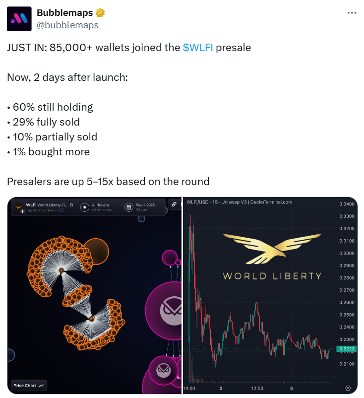 “The 60M WLFI deposit represents about 52.6% of HTX’s total WLFI holdings at present from what I can find onchain based on HTX’s public wallets,” Grogan said in a Thursday X post.