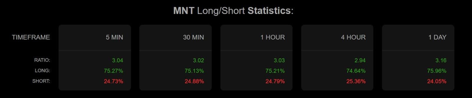 CoinGlass reports a Spot Netflow of -$4.3 million, indicating that more MNT is being withdrawn from exchanges than deposited.