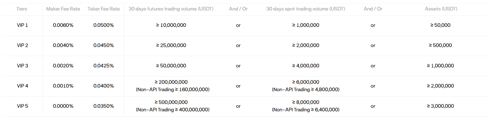 - Futures Trading Fees: The base fees are 0.02% for makers and 0.06% for takers.