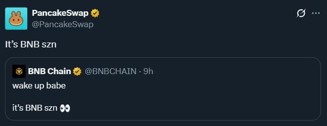 Hours later, PancakeSwap echoed the message. The excitement followed BNB’s new all-time high, which sparked fresh bullish momentum for projects within its ecosystem.