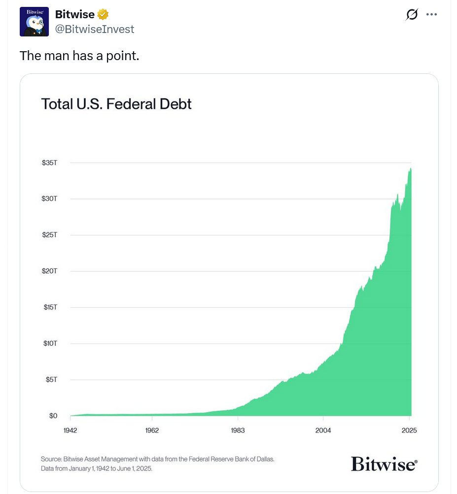 Dalio noted that other Western countries — including the United Kingdom — face the same “debt doom loop” issue and that their currencies will continue to underperform relative to hard currencies like Bitcoin and gold — which he described as an “effective diversifier.”