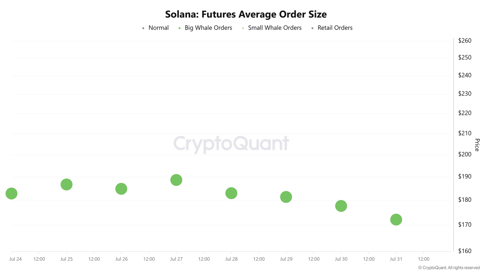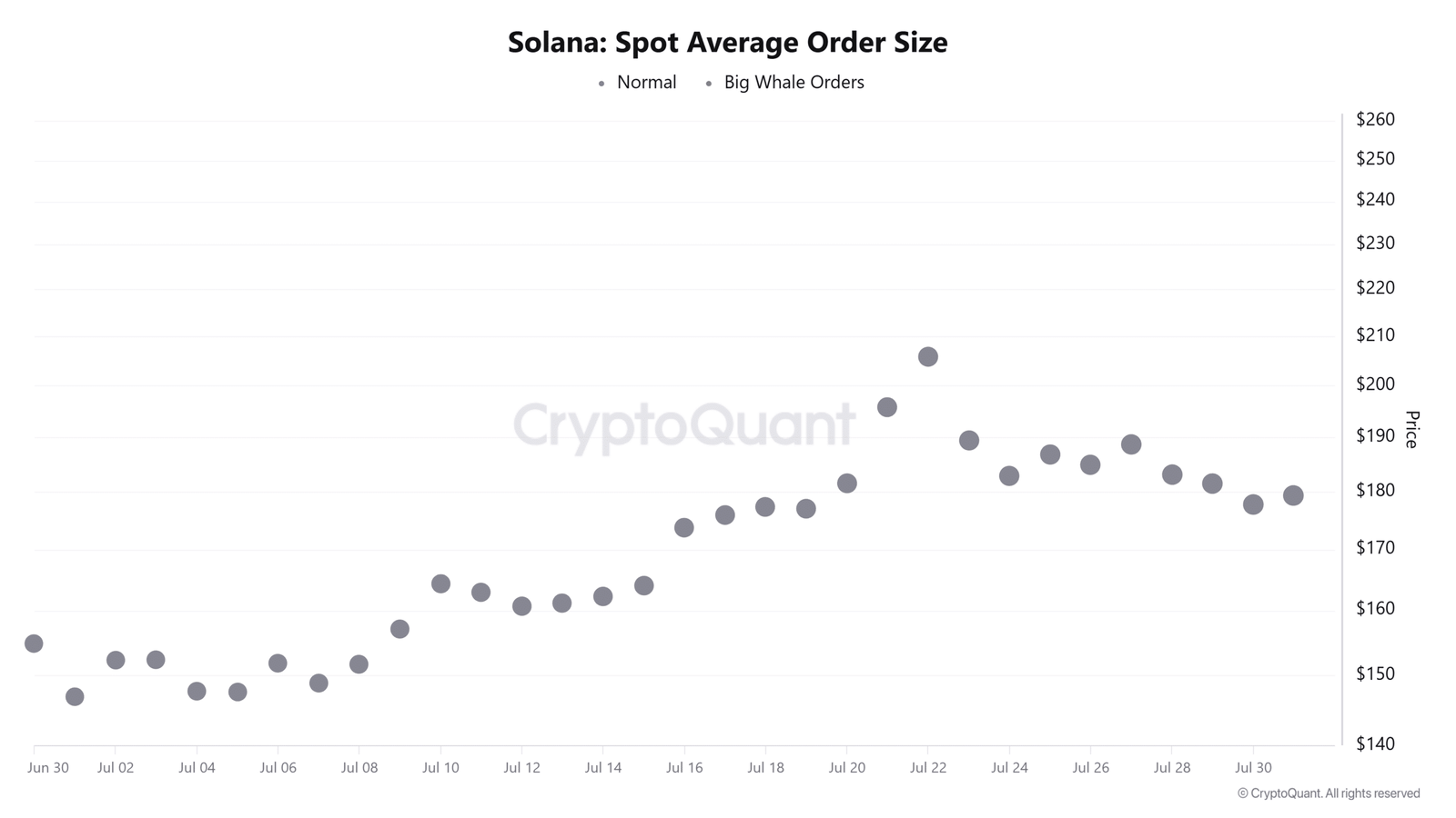 According to CryptoQuant’s Spot Average Order Size, Solana whales stopped accumulating or selling as the market rebounded.