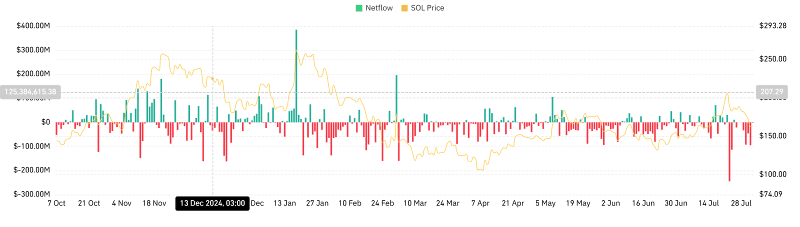 While whales are bearish, small-scale investors continue to accumulate. According to CoinGlass, Solana has recorded a negative Spot Netflow for seven consecutive days.