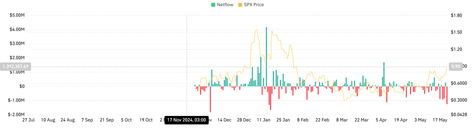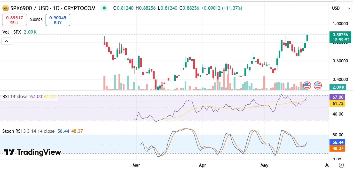 - SPX6900 surged 19.6% to $0.89, marking a 104% rally over the past 30 days.