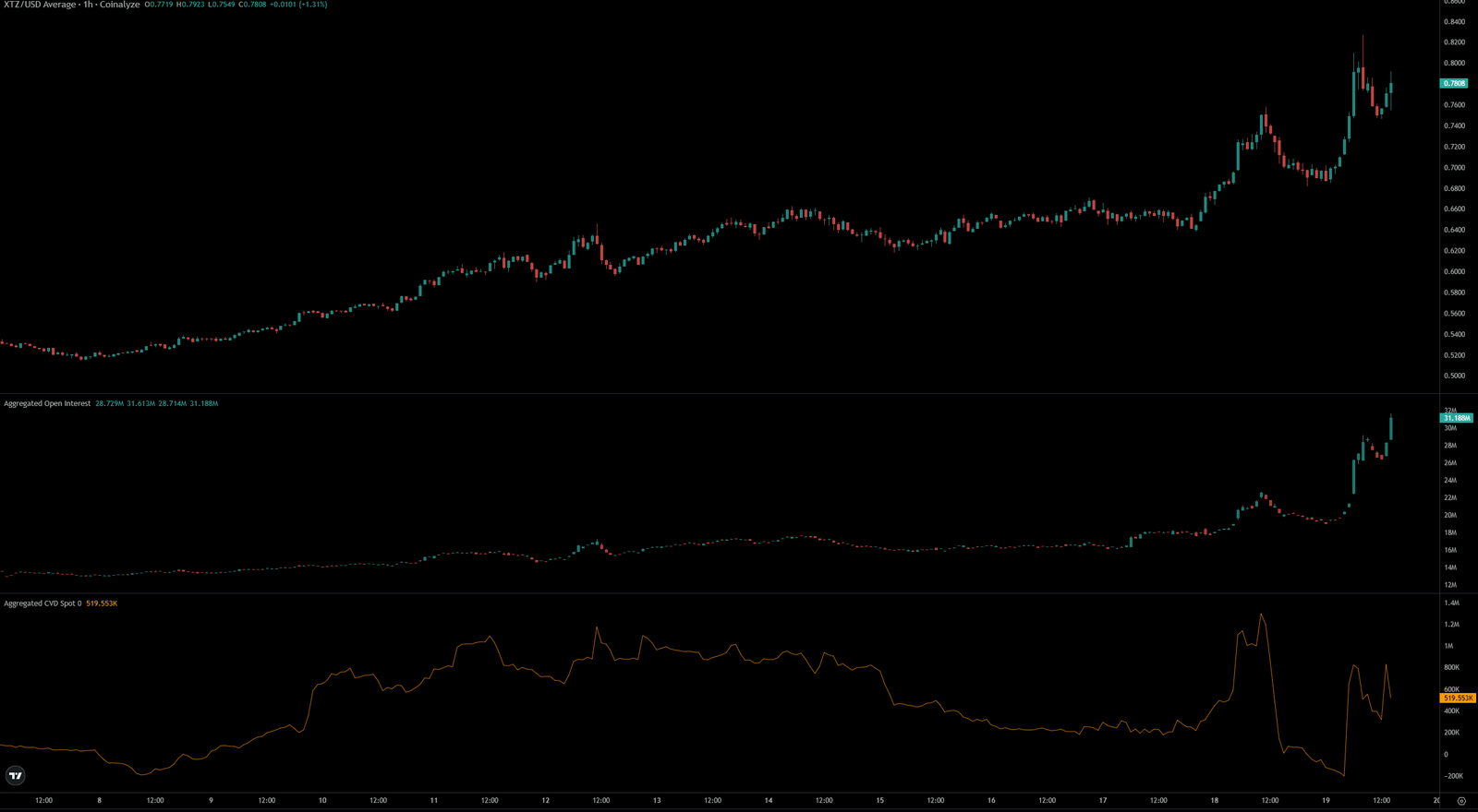 Tezos [XTZ] has gained 8.2% in the past 24 hours on the price charts. Coinalyze data showed that its Open Interest was up 51.2% in the same period.