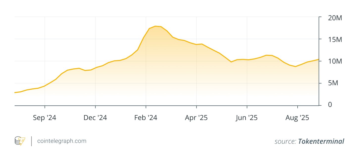 Key drivers: Ultra-low fees ($0.01 average), Coinbase’s 100 million+ user base for onboarding, stablecoin flows and partnerships for consumer DApps.