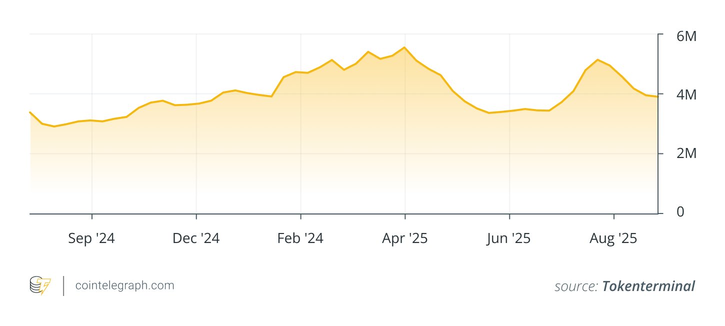 The term “active users” refers to a unique wallet address that completes a transaction.