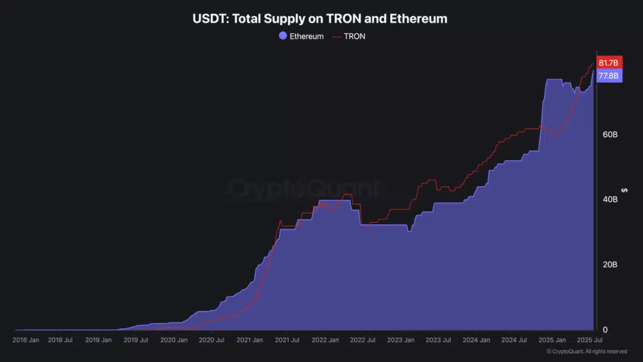 This milestone not only shows the network’s growing liquidity but also has a significant lead over Ethereum, where USDT supply has grown at a slower pace.