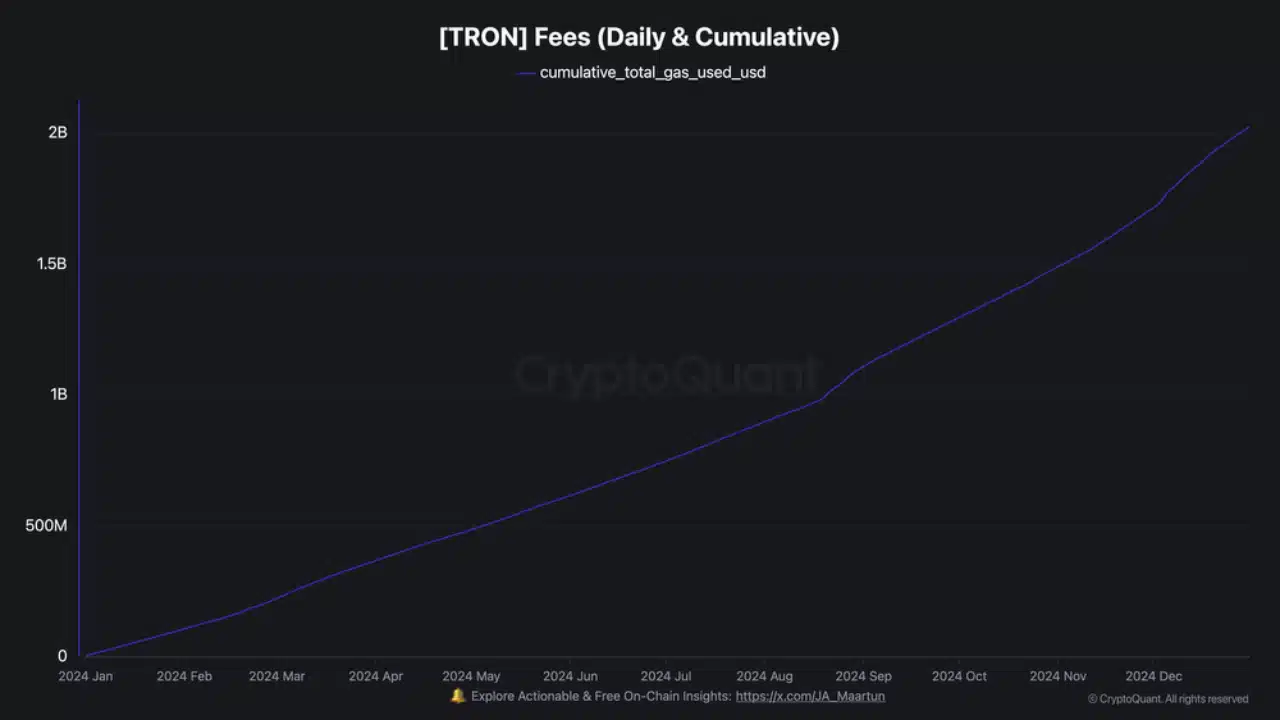 In fact, the pattern points to sustained activity rather than short-term speculation. Since most of these fees are paid in TRX, the rising fee base directly fuels demand for the native token, too!