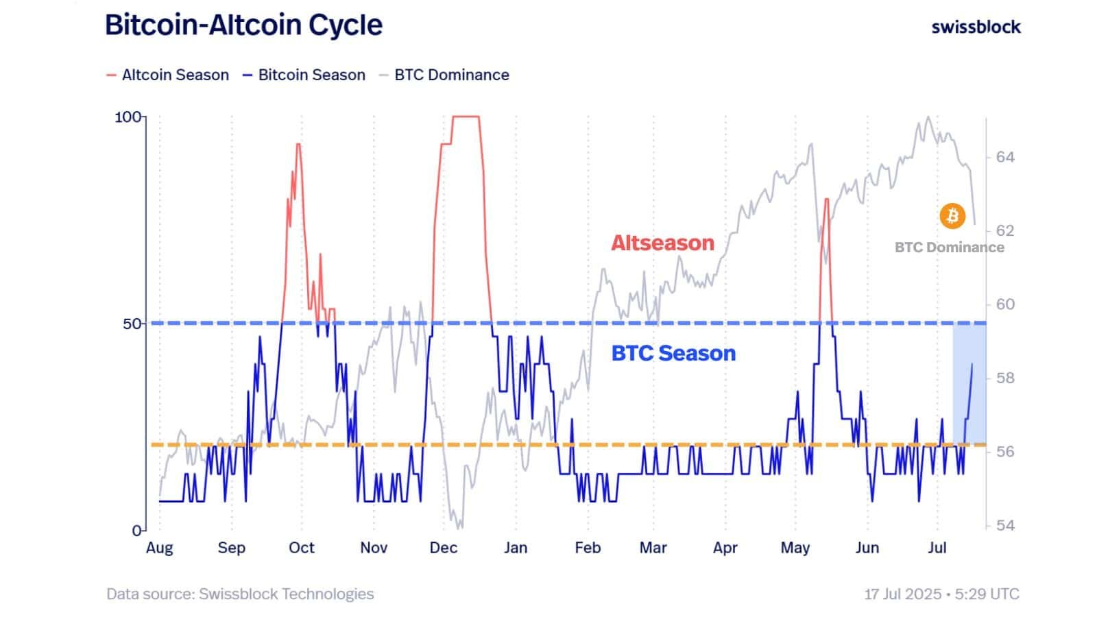 After months of Bitcoin dominance climbing steadily since December 2024, the tide may be turning.