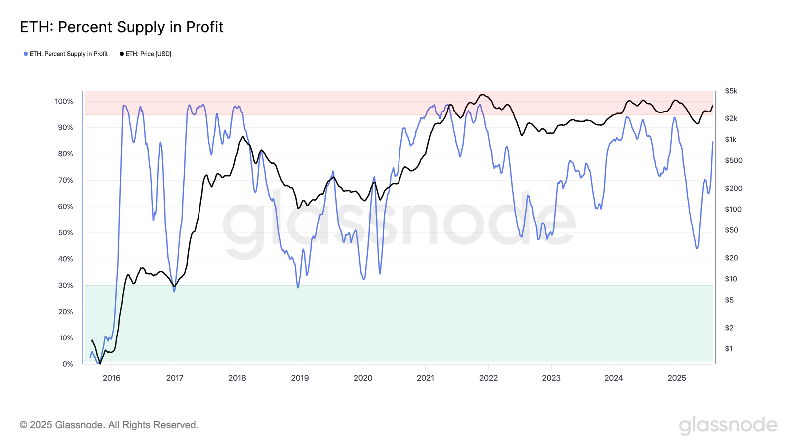 Historically, spikes above the 90% threshold have coincided with price tops. So as the number of profitable holders goes up, the more likely they will book profits or rotate capital to assets with better fundamentals.