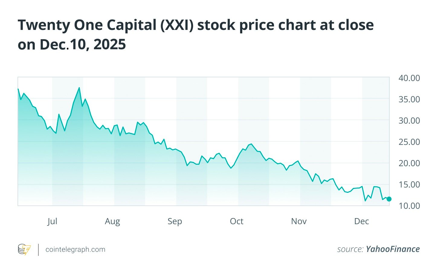 Given the scale of its treasury and the profile of its backers, many market participants expected strong attention around Twenty One’s launch. Yet its first day of trading on Dec. 9, 2025, delivered a different outcome. The stock fell sharply despite the company’s large Bitcoin holdings and high-profile institutional support.