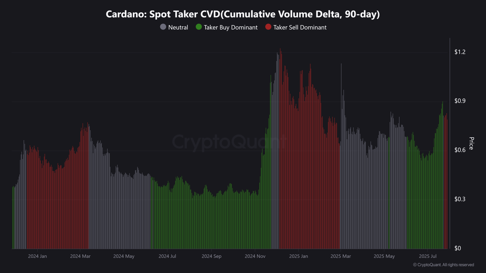 Meanwhile, in the short term, ADA’s spot taker CVD (cumulative volume delta) has turned negative, underscoring strong selling pressure in the past week.