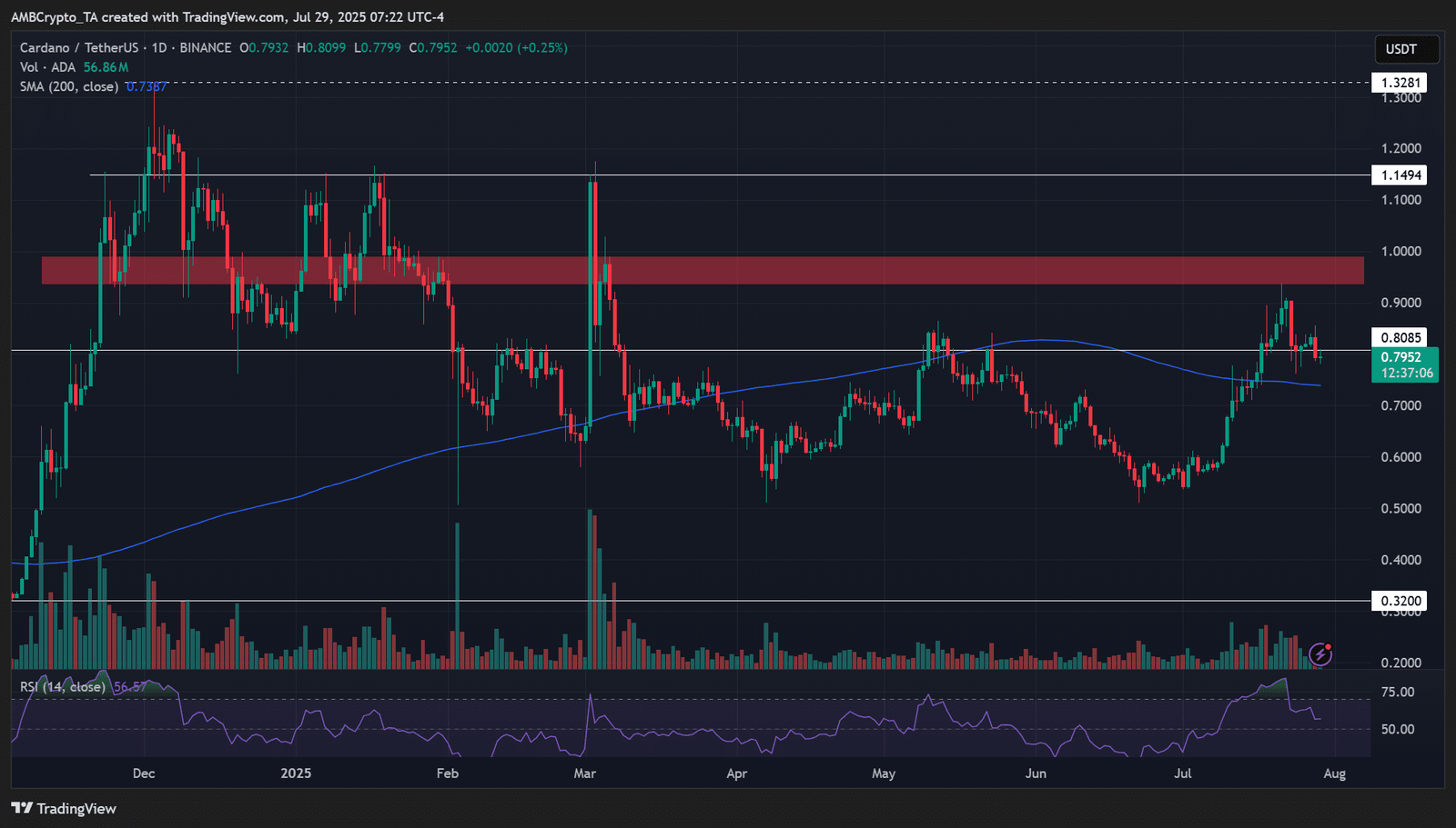 On the price charts, ADA hovered around $0.80, a key resistance level in Q2.